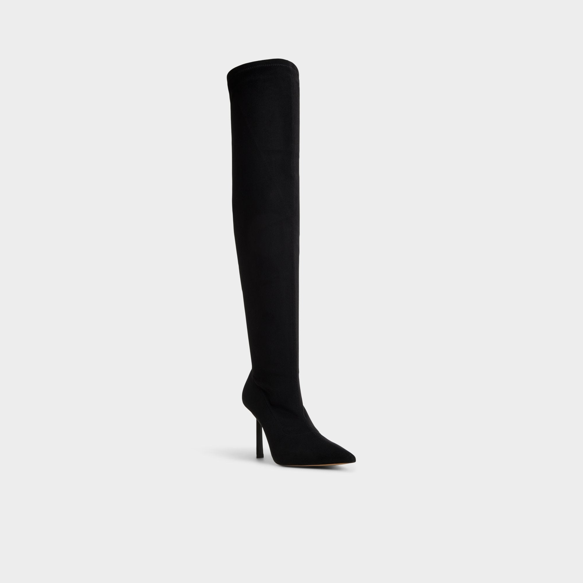 Drama climbs past the knee in butter-soft suede, wrapping legs in seamless columns ending in razor-sharp points and slim stiletto lifts every stride like city lights after dark. Let it steal focus with a mini sweaterdress at rooftop cocktails or layer under longline coats when gallery openings call.