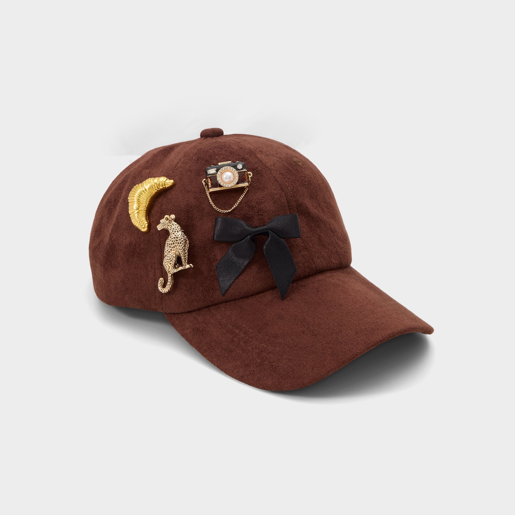 Camera-pin set in tortoiseshell, with a satin bow, gilded croissant, and a leopard motif, stitches vacation vibes across jackets and hats, turning every tote into a little story for spontaneous day trips. Cluster them on blazers for gallery nights or dot denim jackets at weekend markets, finishing looks with flair.
