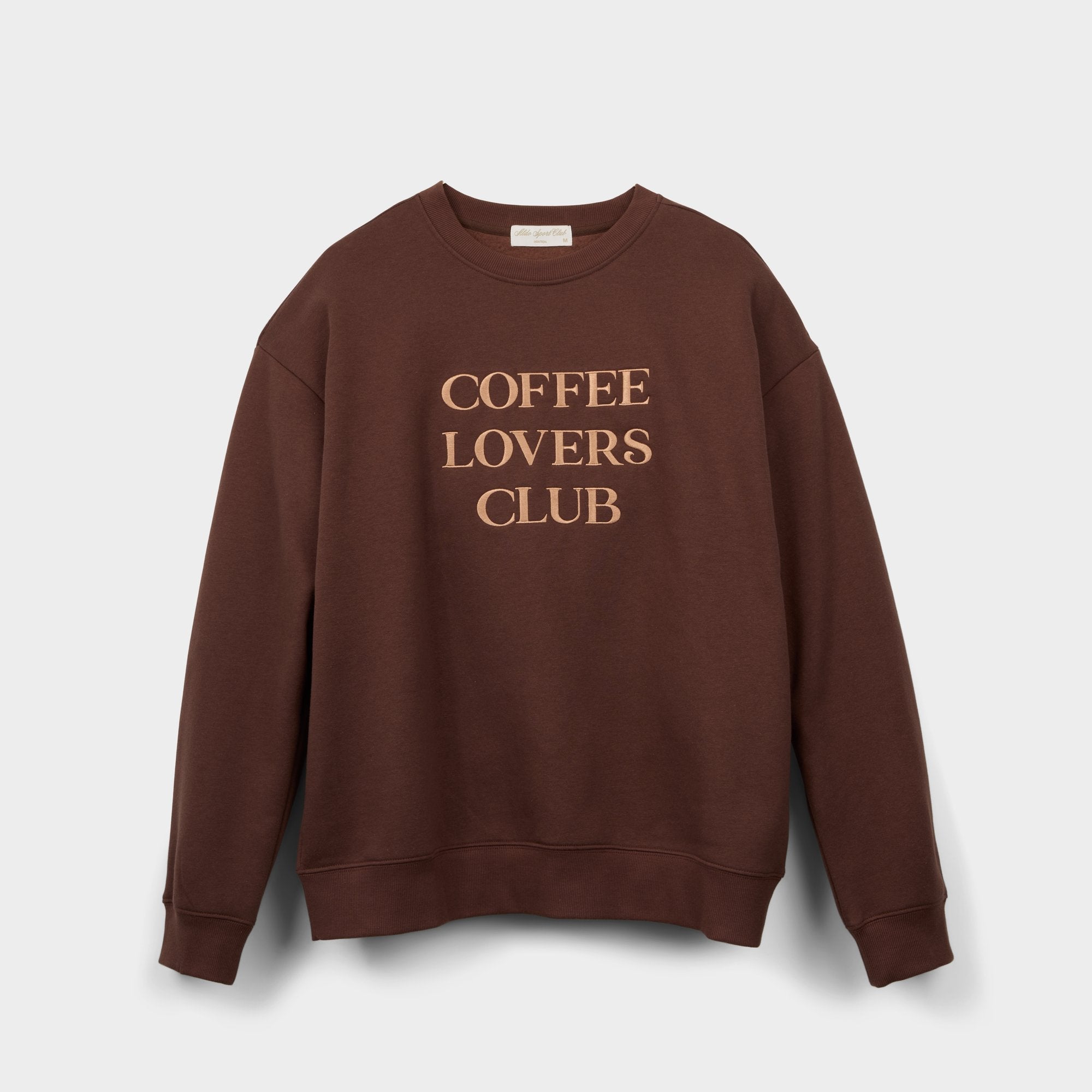 Coffee Lovers Club in soft serif letters graces the deep mocha cotton, with a relaxed crew and brushed-back fleece making devotion as cozy as that first sip. Layer it under a tailored camel coat for brisk coffee runs or pair with well-worn jeans during late study sessions to keep effortlessly warm.