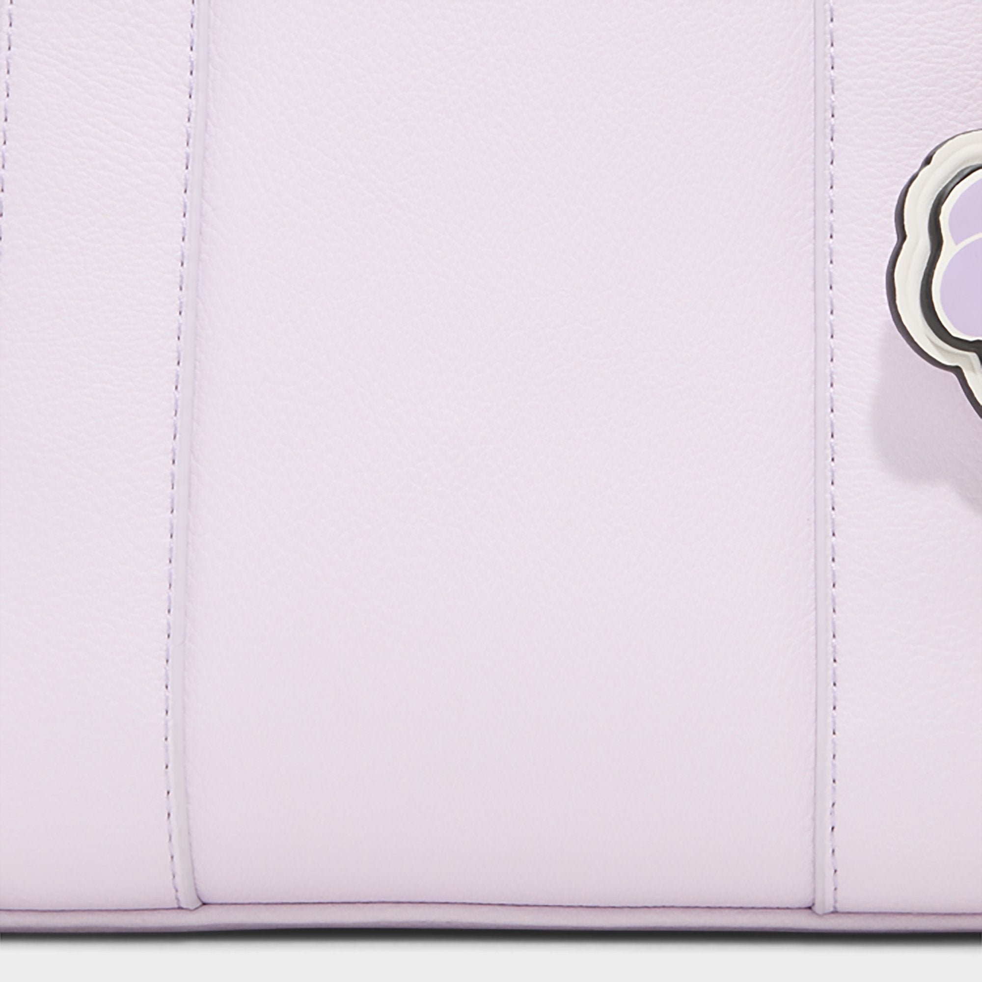 Soft lilac leather shapes this boxy tote, featuring a sunny plaited tassel with tropical blossom pendants that clip on for instant mood-boosting colour, and double top handles keep the silhouette polished yet playful. Carry it with white tees and wide-leg jeans for coffee runs, or sling it over a slip dress at rooftop sunsets to pull the look together.