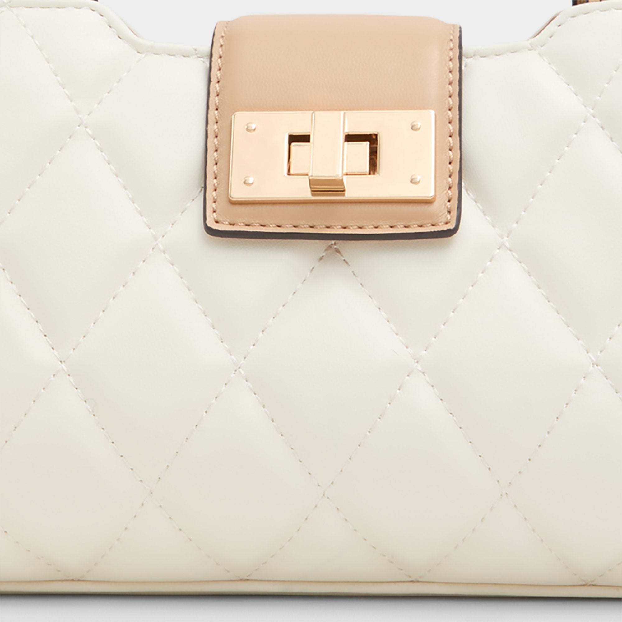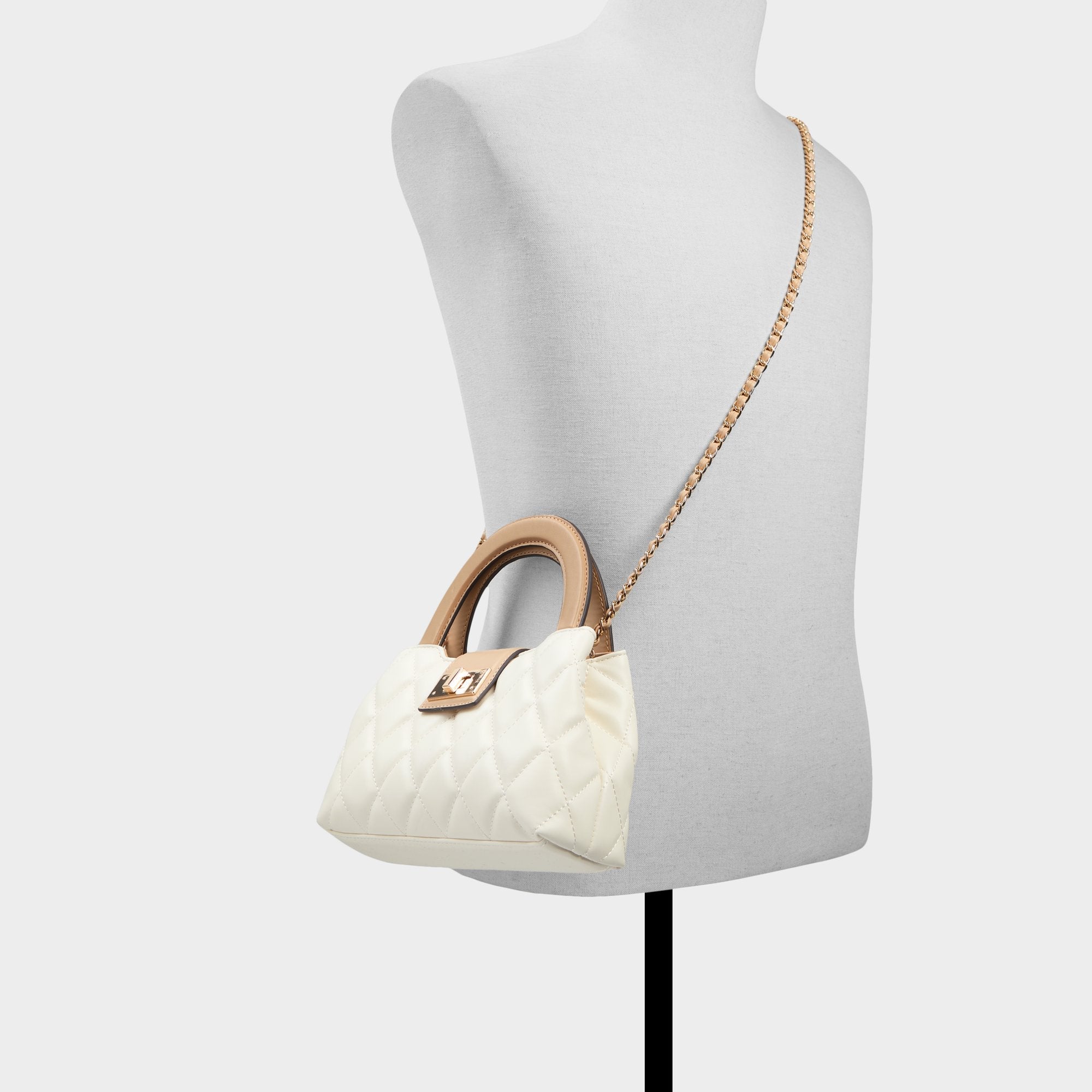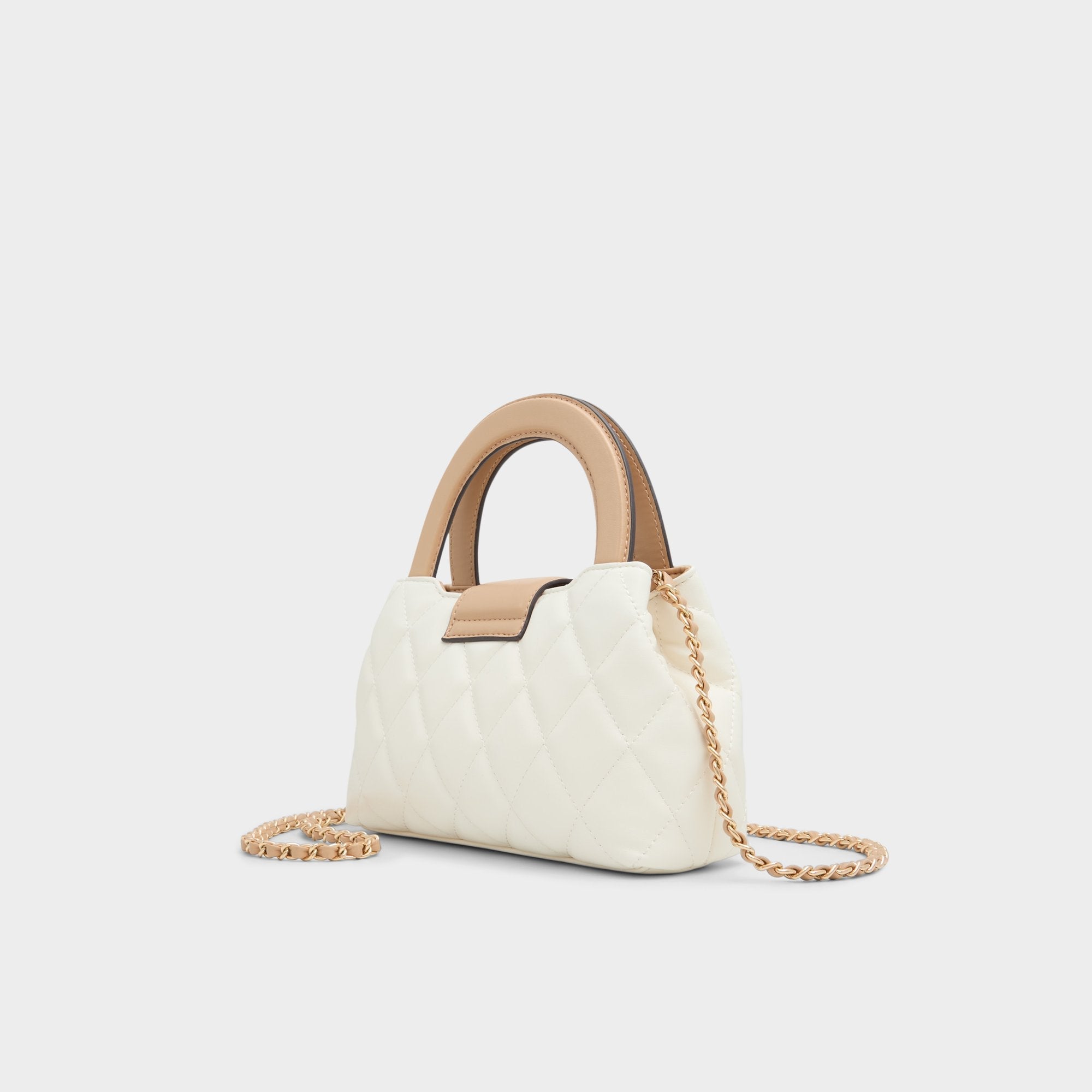 This quilted top handle bag is the perfect accessory to complement your day-to-night looks.