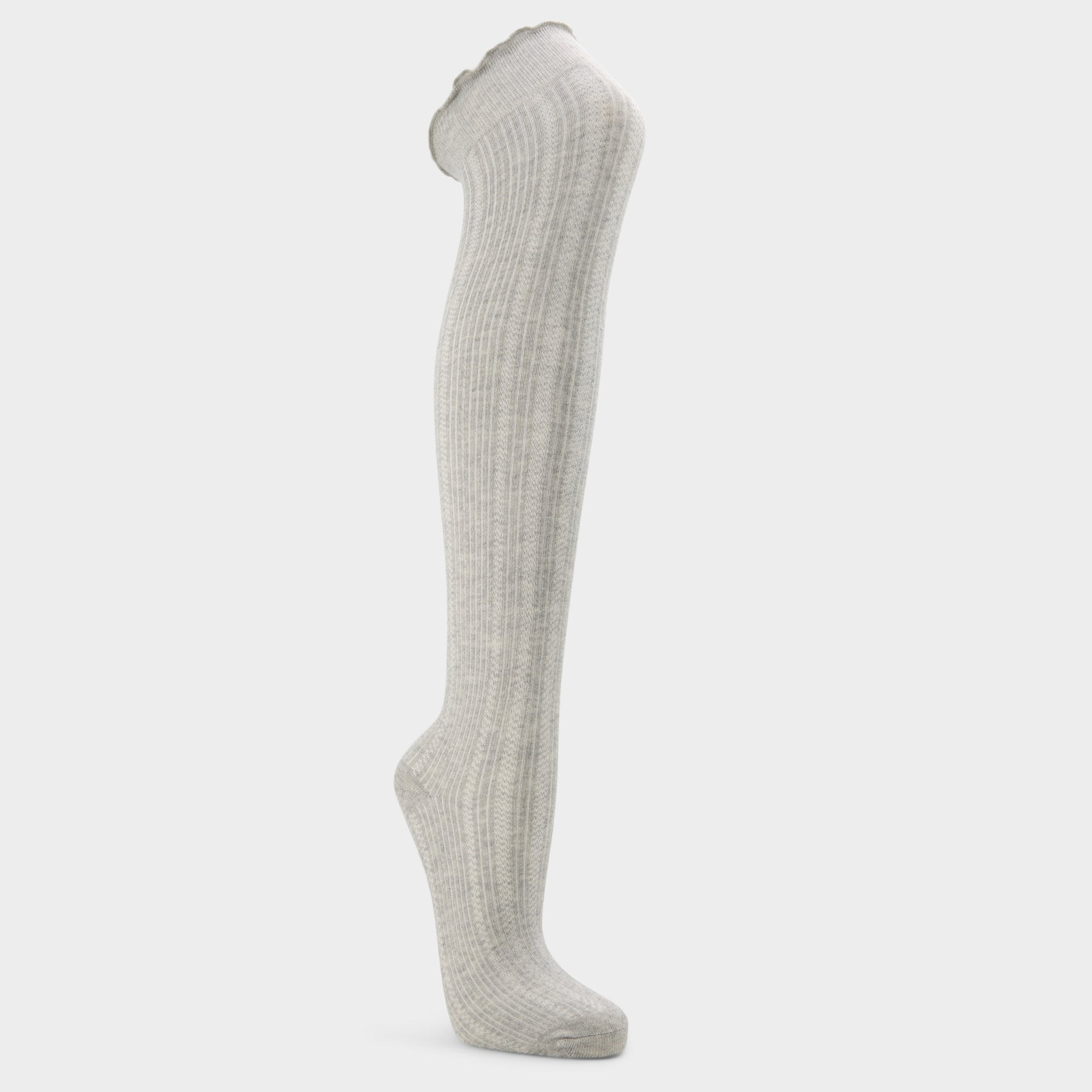 Scalloped frill crowns these over-the-knee rib-knit wool socks, wrapping legs in cozy stretch that feels like your favorite sweater, only warmer for boot-season wanderings. Layer them under lug-sole ankle boots for coffee runs, or let the fluttery edge peek above riding boots on crisp campus walks.