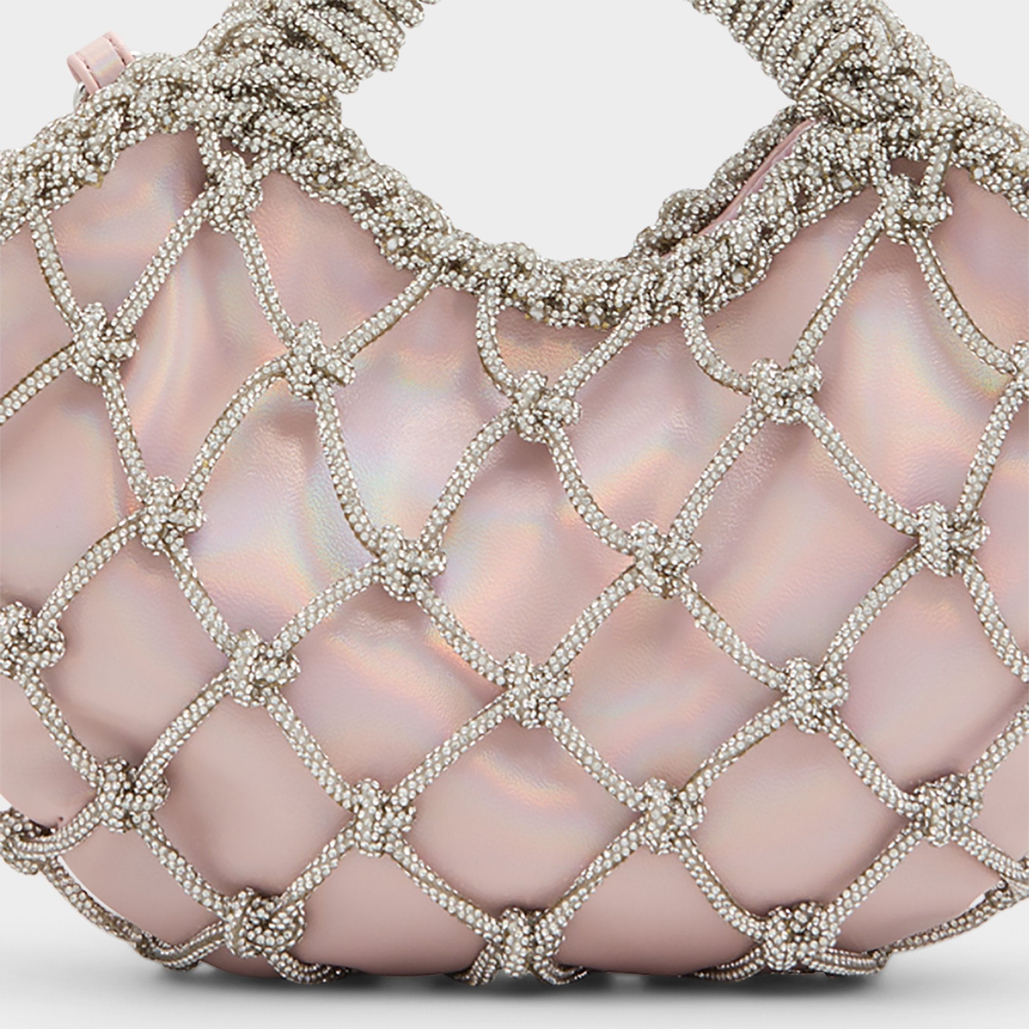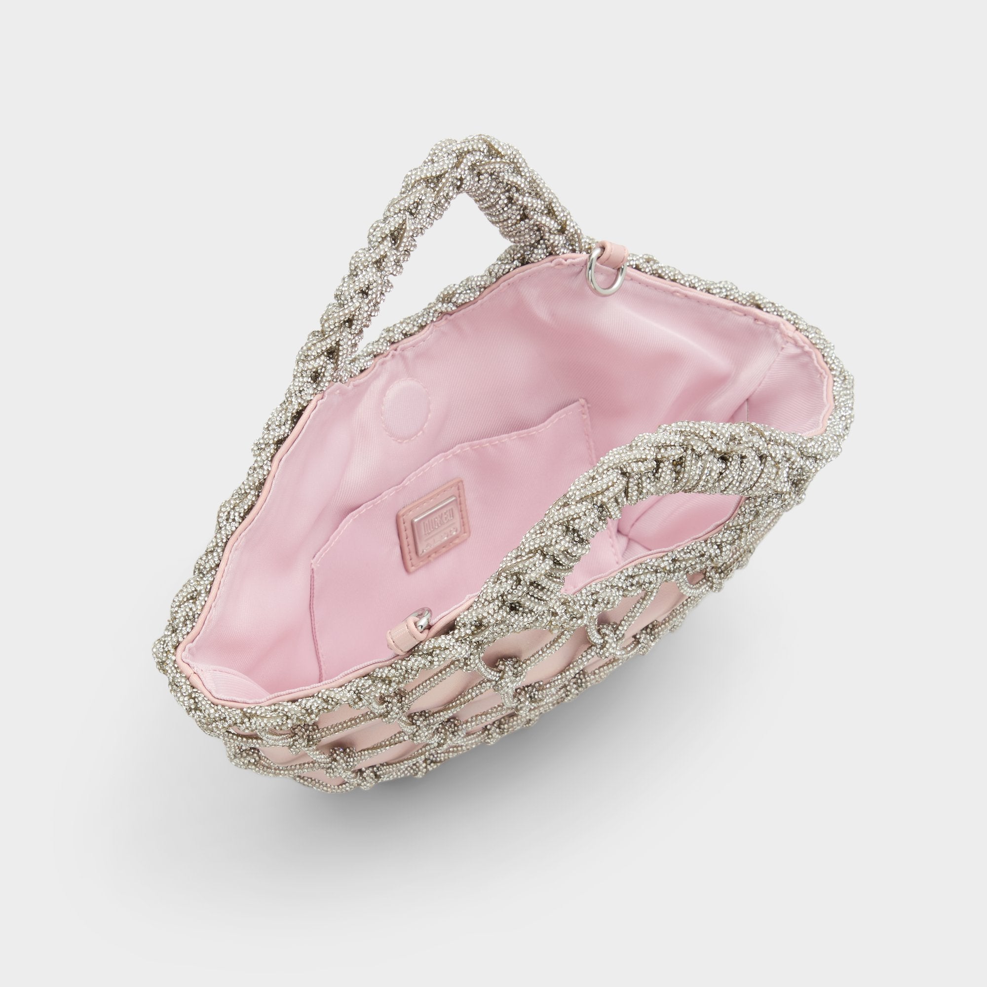 She is perfect in pink. Filled with charm, this Glinda-inspired textured handbag is complete with silver weaving atop a spellbinding pink satin. Grab her by the top handle and float over Oz in style.