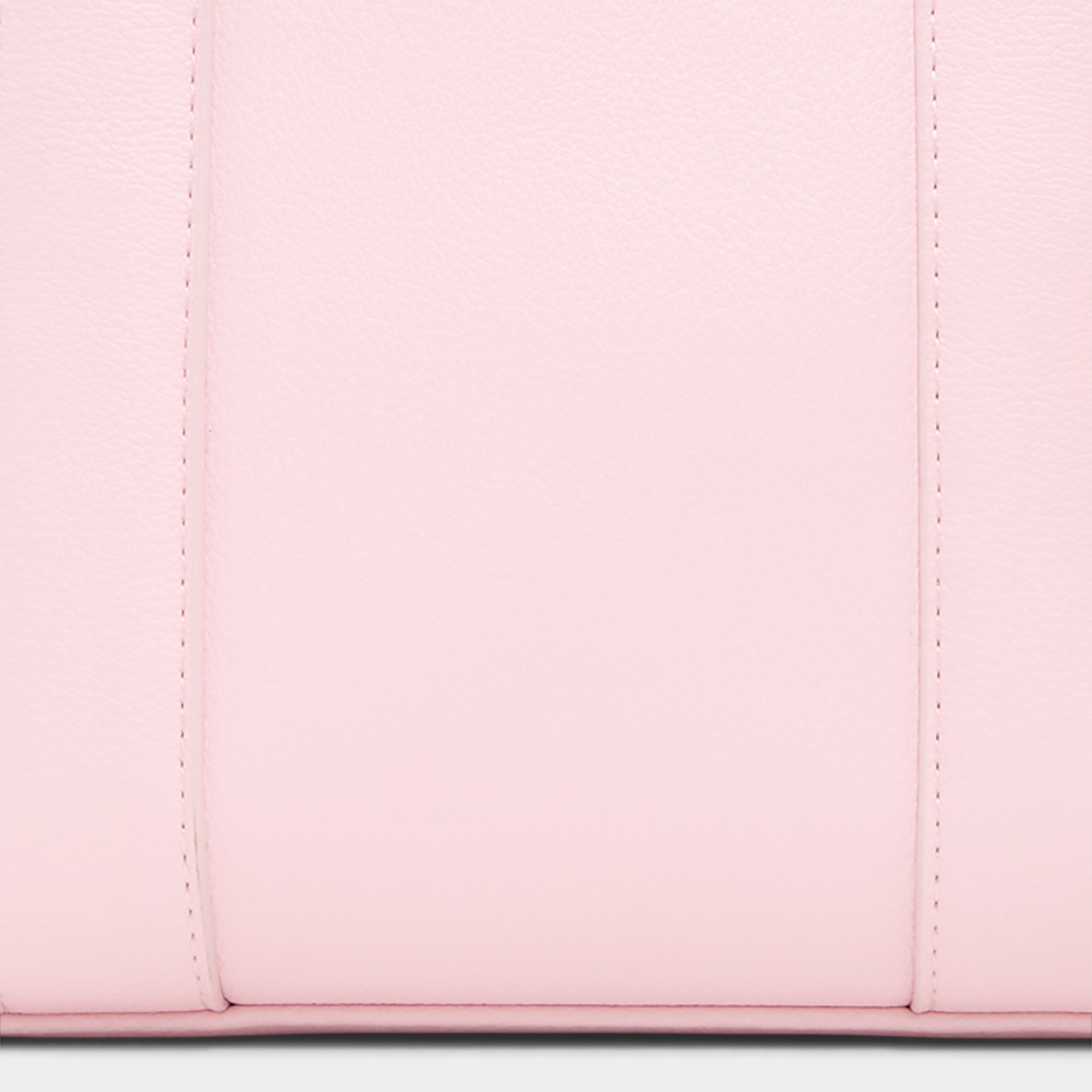 Pillow-soft marshmallow-pink panels frame this petite tote, with clean vertical seams and a flower-and-heart charm that adds playful mood as you go about your day, from morning coffee to sunset strolls. Carry it with linen pants for cafe mornings, or sling it with a sundress and sandals for outdoor dining.