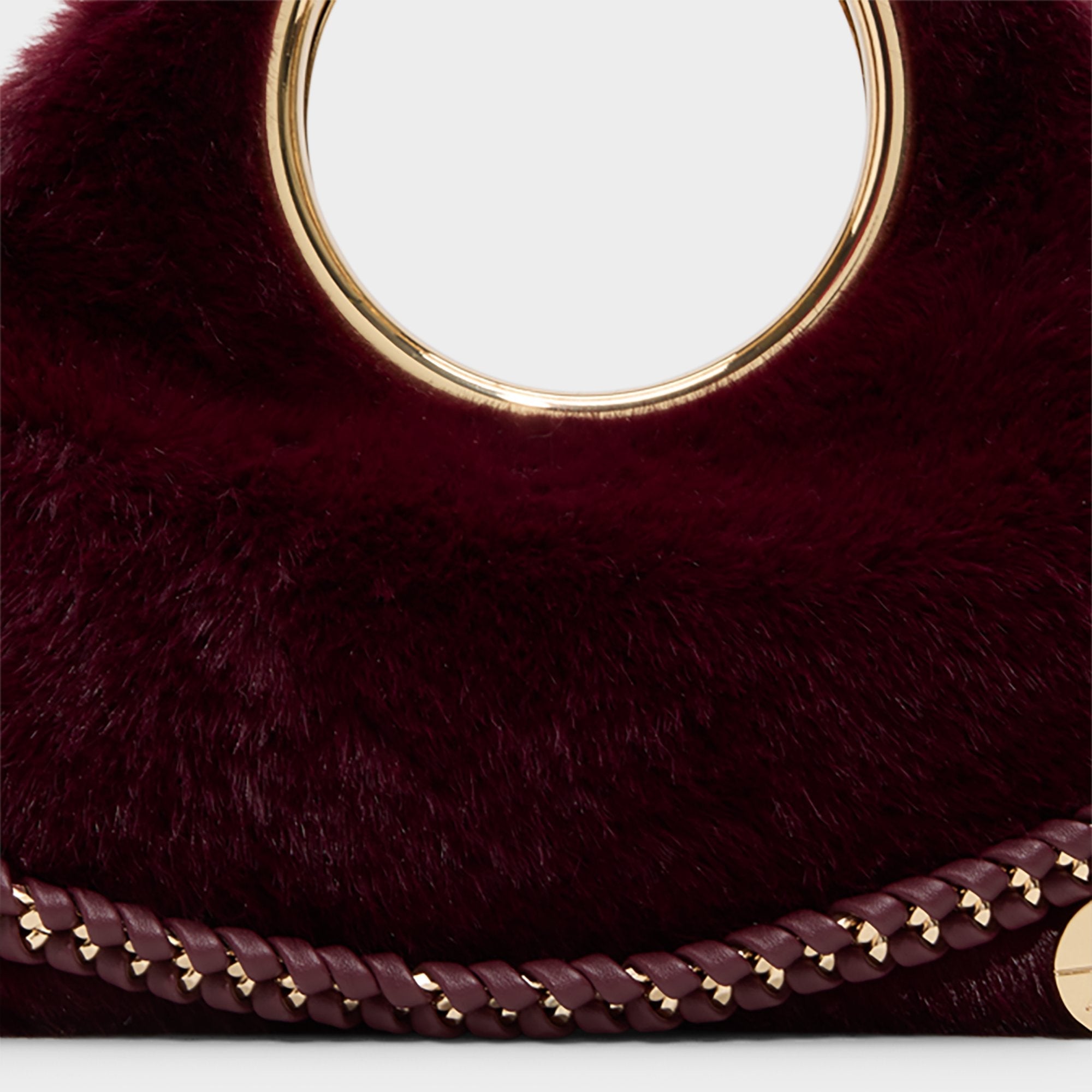 Burgundy faux fur meets gleaming ring handles in a mini bag that switches from arm candy to hands-free in seconds, thanks to a braided chain strap that feels equally ready for party time and casual days. Carry it with velvet for holiday parties or sling over denim on coffee runs to finish the look with effortless polish.