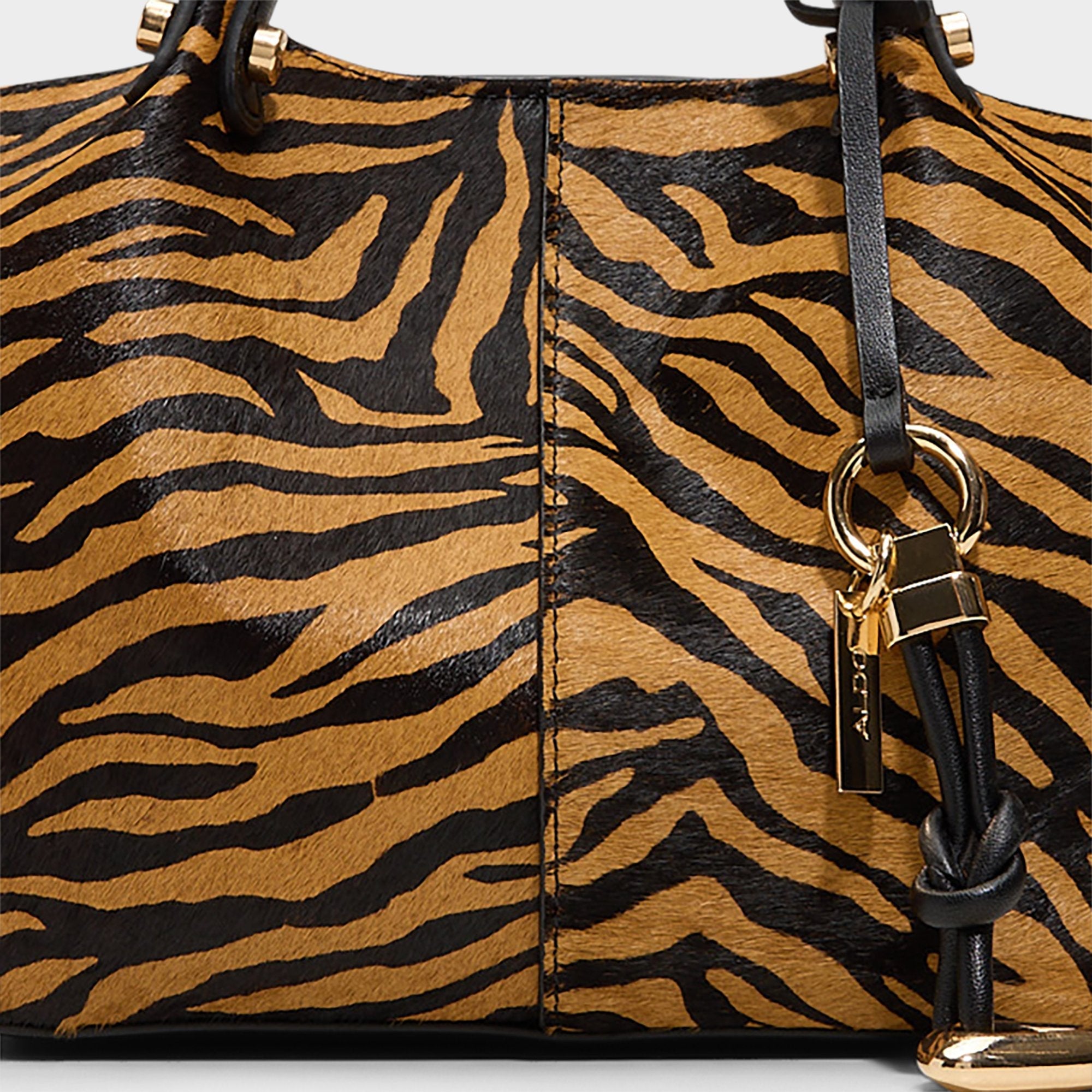 Tiger-striped hair-on hide energizes roomy totes, accented by sleek black leather and gleaming hardware, while a zip-secure interior keeps essentials quietly organized for city commutes and late-night runs. Carry it with crisp tailoring for work or sling it over casual denim for evening errands, letting the leather texture finish every look.