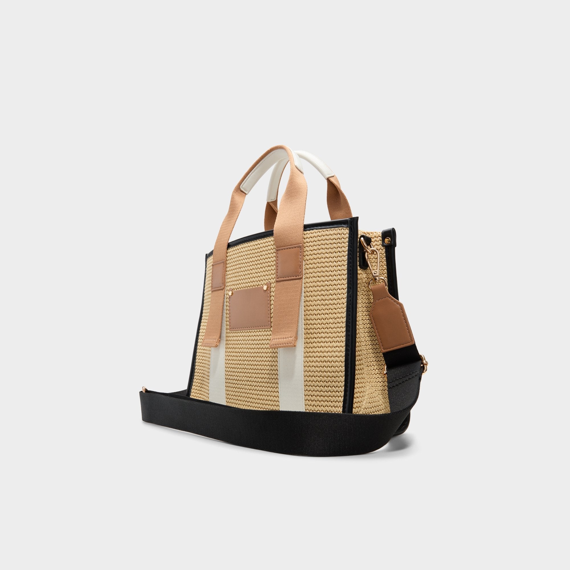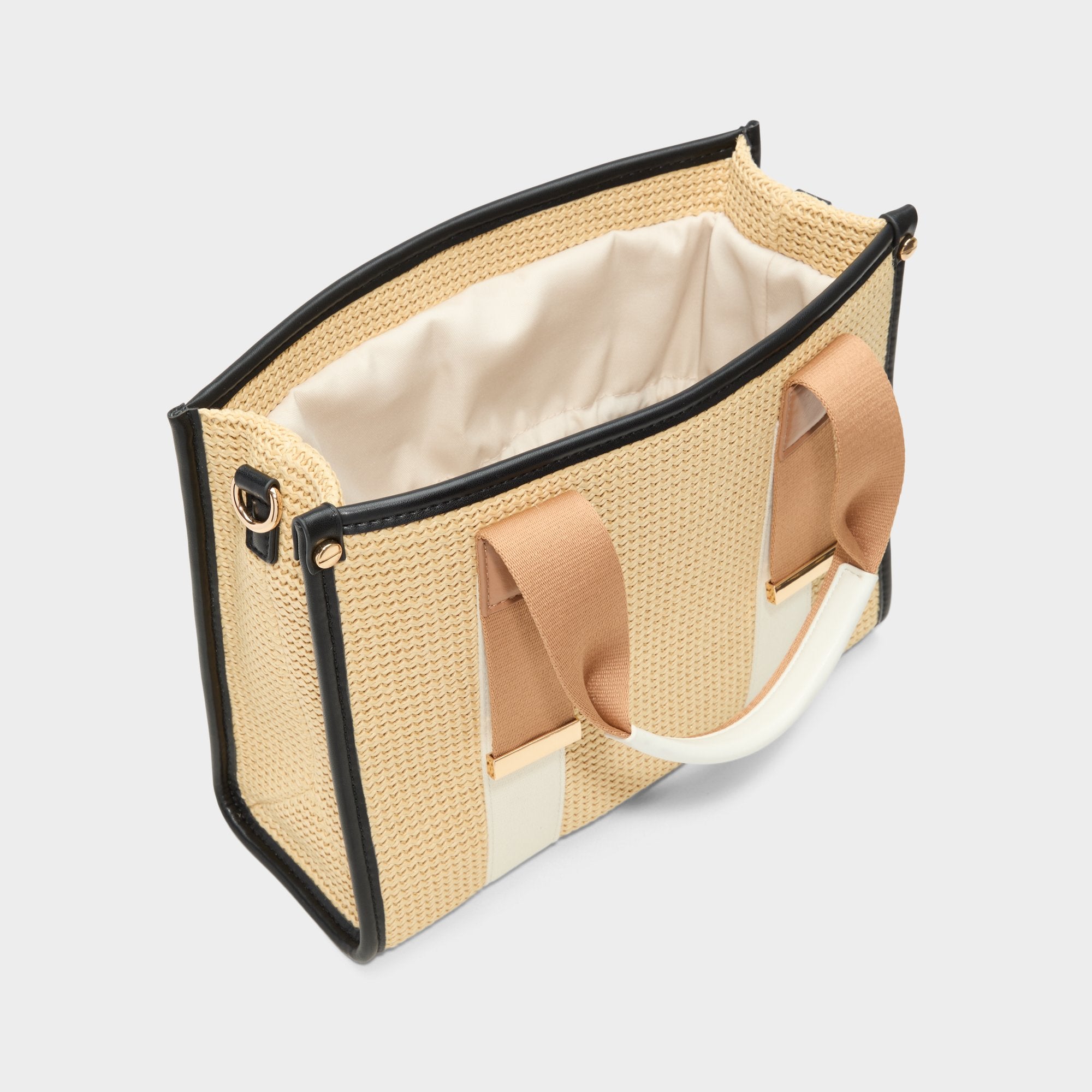 Featuring chic color-blocking handles and a removable, adjustable crossbody strap, this textured satchel offers ultimate versatility for any journey, whether you're lounging by the beach or exploring the city.