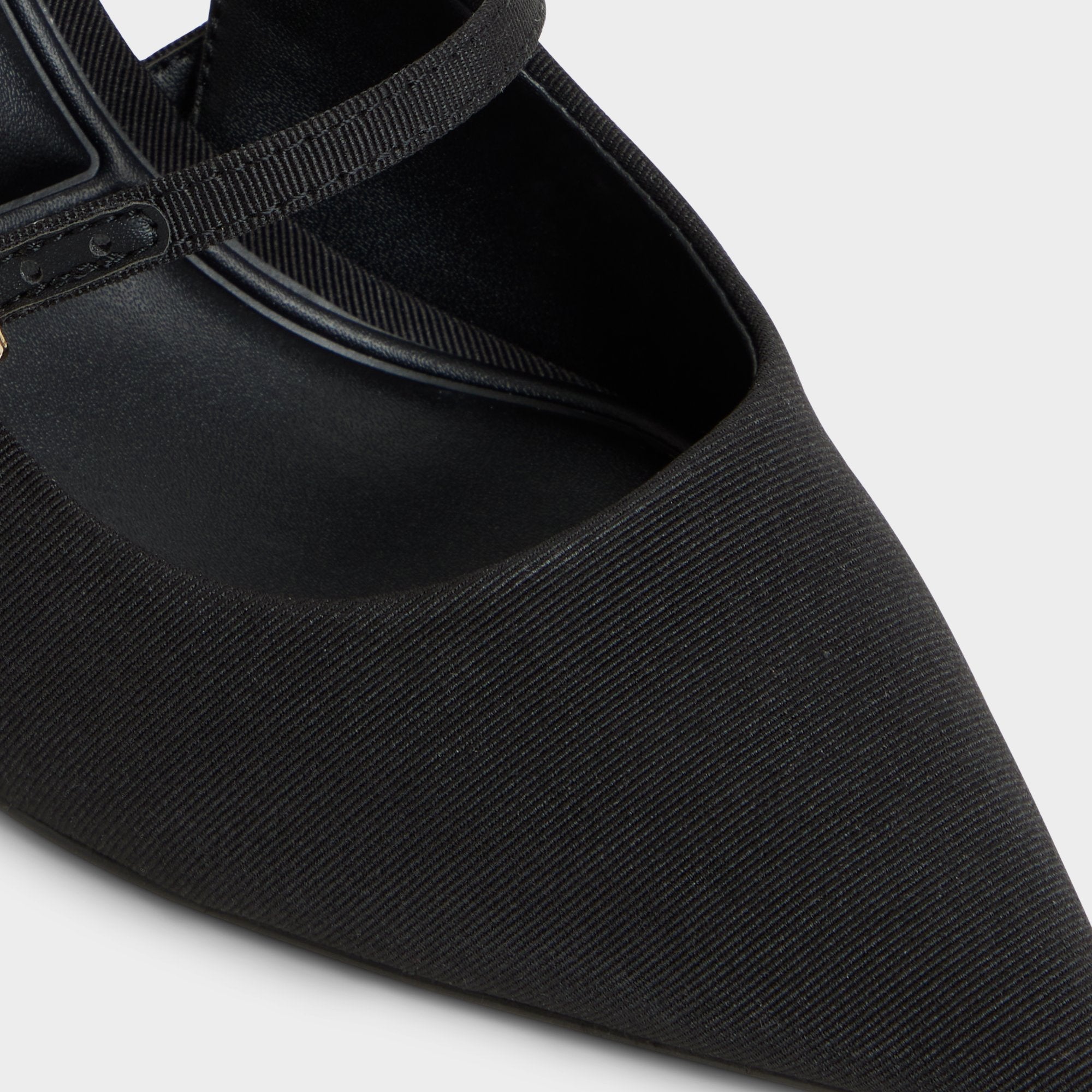 That knife-edge pointed toe sets the pace, while a slim Mary Jane strap flickers gold against matte fabric, and a balanced block heel keeps every pitch, toast, and platform shuffle both steady and chic. Pair with sharp tailoring for boardroom wins, or swap in a satin slip when after-dark jazz bars cue the improv.